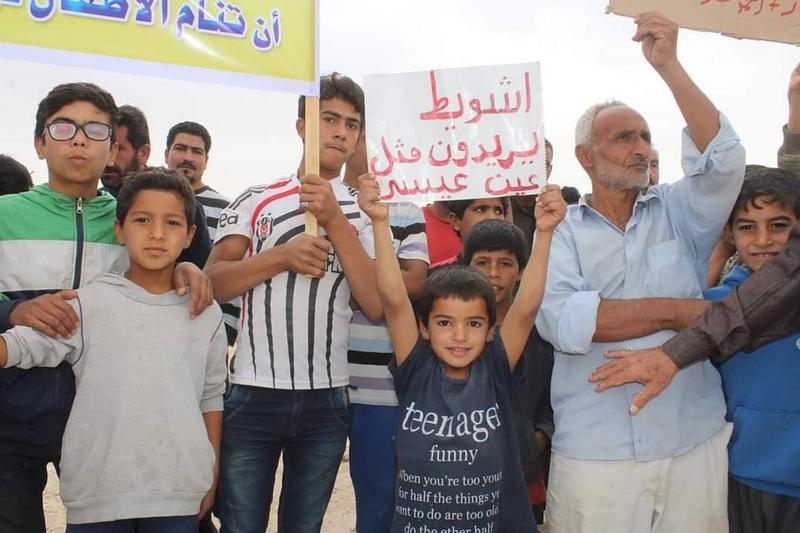 وقالت شبكة (فرات بوست) إن نازحي مخيم مبروكة خرجوا بمظاهرة قبل يومين بسبب سوء الأوضاع المعيشية، والطبية، حيث رافعوا لافتات كتب عليها “حرموني من مدرستي فلا تحرموني من الطعام”، و”نريد إنقاذ الطفل من الجوع”.